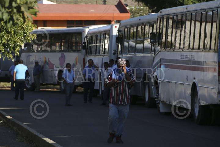 OAXACA, OAXACA, 09FEBRERO2015.- Un grupo de presuntos estudiantes pertenecientes a la Universidad Autónoma Benito Juárez de Oaxaca (Uabjo) tomaron y retuvieron más de 50 unidades del transporte urbano de la ciudad para exigir que el costo del pasaje se mantenga en 6 pesos y no se incremente. Los camiones fueron introducidos al campus universitario y no serán liberadas en tanto no haya una reunión con funcionarios de la secretaría de Vialidad y Transporte. FOTO: ARTURO PÉREZ ALFONSO /CUARTOSCURO.COM