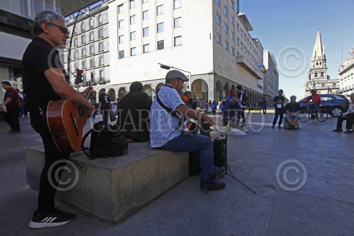 GUADALAJARA, JALISCO, 26ENERO2024.- Músicos urbanos diversos, ofrecen sus servicios en las principales calles del centro de la ciudad, esto con el fin de subsistir en estos tiempos tan complicados, en donde conseguir un trabajo estable es algo difícil. FOTO: FERNANDO CARRANZA GARCIA / CUARTOSCURO.COM