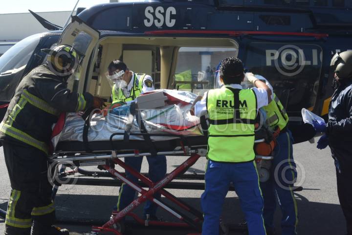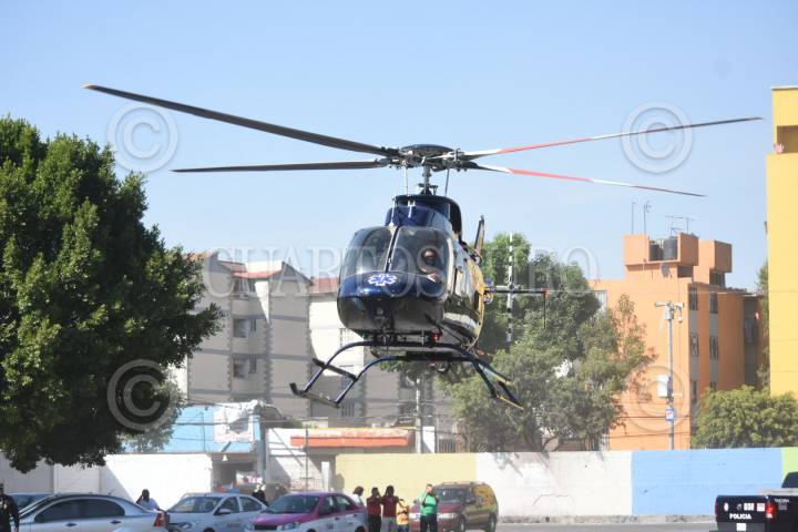 Traslado de urgencia en helicóptero de una menor, desde hospital de Milpa Alta hasta el estacionamiento de un centro comercial en la México Tacuba.