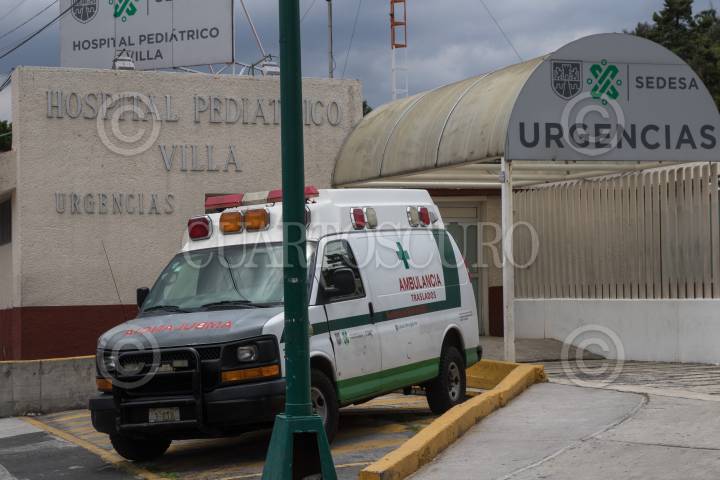 Una ambulancia permenece a la espera en la entrada del Hospital Pediátrico de la Villa.