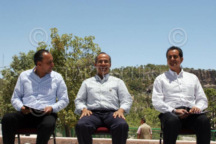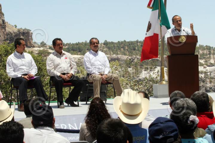 MUNICIPIO DE URIQUE, CHIHUAHUA. 22 DE MAYO DEL 2007.- El presidente Felipe Calderón Hinojosa durante la celebración del día internacional de la biodiversidad, que tuvo lugar en este municipio. FOTO: ALFREDO GUERRERO/CUARTOSCURO.COM