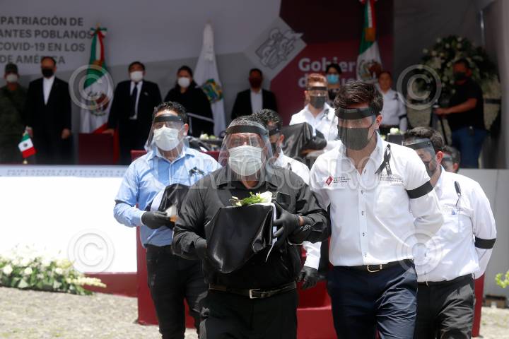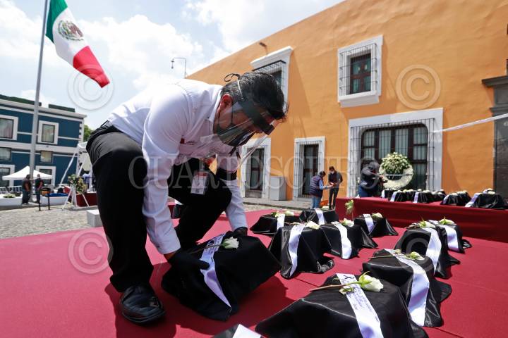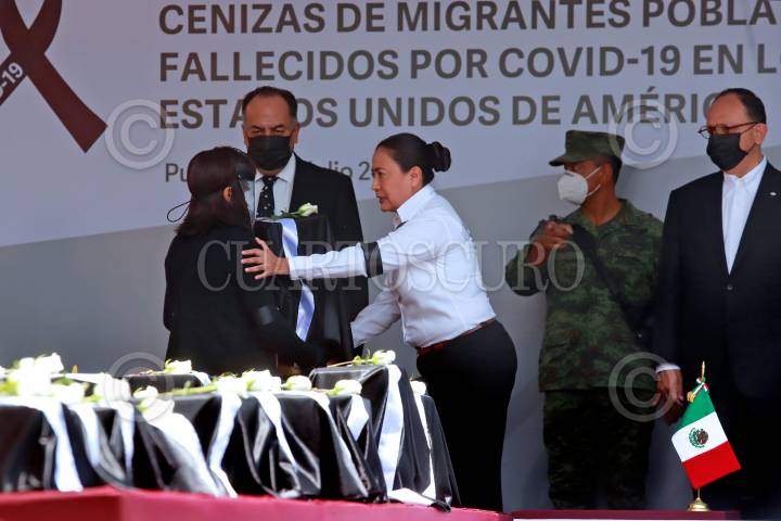 En las instalaciones de Funerales Chilpancingo autoridades de la Secretaría de los Migrantes y Asuntos Internacionales (SEMAI) entregaron las 23 urnas de paisanos que murieron de Covid-19 en los Estados Unidos.