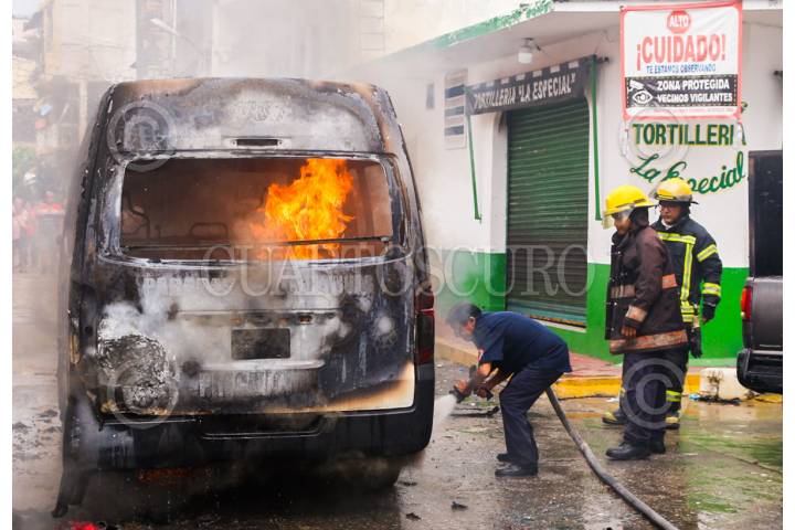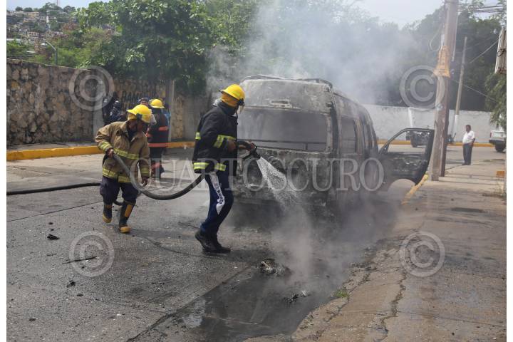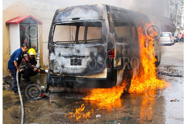 Hombres armados incendiaron una Urvan del transporte público está mañana en el Centro de Acapulco. Testigos informaron que hombres armados bajaron al chófer y pasajeros para prender fuego al transporte; bomberos del municipio se encargaron de sofocar