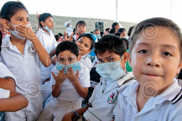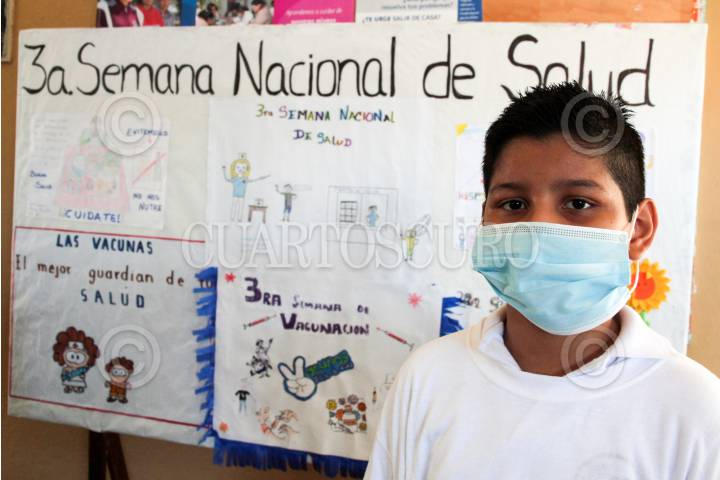 VILLAHERMOSA, TABASCO, 05OCTUBRE2009.- En el inicio de la Tercer Semana Nacional de Salud niños de nivel primaria usan cubre bocas y otros más pancartas exhortando al cuidado y protección de la salud. FOTO: MARCO POLO GUZMÁN HERNÁNDEZ/CUARTOSCURO.COM