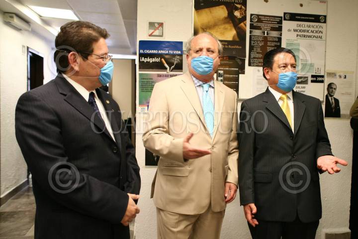 MÉXICO, D.F., 27ABRIL2009.- Los Senadores del PRD, Javier Castellón Fonseca, Graco Ramírez, Carlos Navarrete, usaron cubrebocas durante sus actividades legislativas. FOTO: CUARTOSCURO.COM