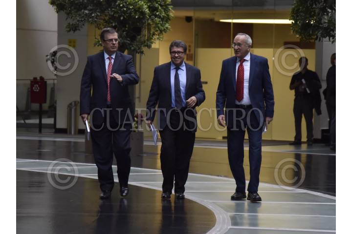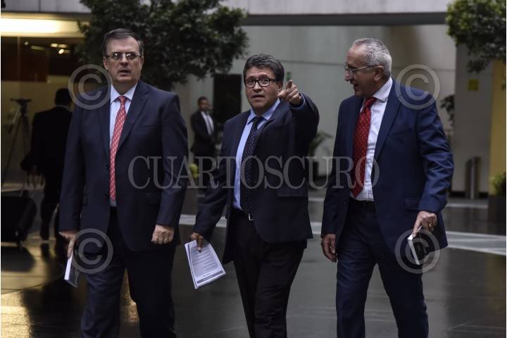 CIUDAD DE MÉXICO, 03OCTUBRE2018.- Ricardo Monreal, presidente de la Junta de Coordinación del Senado de la República, en compañía de Marcelo Ebrard, Jesús Seade y miembros del gabinete del gobierno federal de Andrés Manuel López Obrador, para iniciar con la revisión y análisis detallado del nuevo acuerdo comercial USMCA entre Canadá, Estados Unidos y México. FOTO: MARIO JASSO /CUARTOSCURO.COM