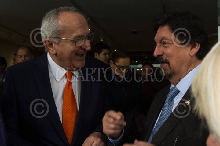 CIUDAD DE MÉXICO, 17OCTUBRE2018.- Jesús Seade; quien fue designado por el Presidente Electo, Andrés Manuel López Obrador, como negociador del nuevo tratado comercial con Estados Unidos y Canadá, y Napoleón Gómez Urrutia, conversan tras concluir la reunión que sostuvo Seade con los senadores de Morena, en la sede del Senado de la República. FOTO: MOISÉS PABLO /CUARTOSCURO.COM
