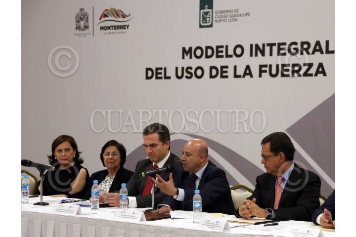 MONTERREY, NUEVO LEÓN, 14JUNIO2017.- Renato Sales Heredia, Comisionado Nacional de Seguridad, durante la presentación del “Modelo Integral Sobre el Protocolo del Uso de la Fuerza para Policías Municipales”, lo acompaño el Subsecretario de Derechos Humanos de la Secretaría de Gobernación, Roberto Campa Cifrián, y el Presidente Municipal de Monterrey, Adrián Emilio de la Garza Santos, ahí seña sobre la necesidad de una norma que regule el uso de la fuerza a nivel nacional y agradeció la participación de diferentes autoridades municipales y federales, así como de asociaciones civiles para la construcción de este modelo. Sales Heredia destacó la importancia de la capacitación y profesionalización: “La mejor manera de que respeten a los policías es respetar a los ciudadanos y la mejor manera de que un policía respete una norma es que la conozca”. FOTO: CNS /CUARTOSCURO.COM
