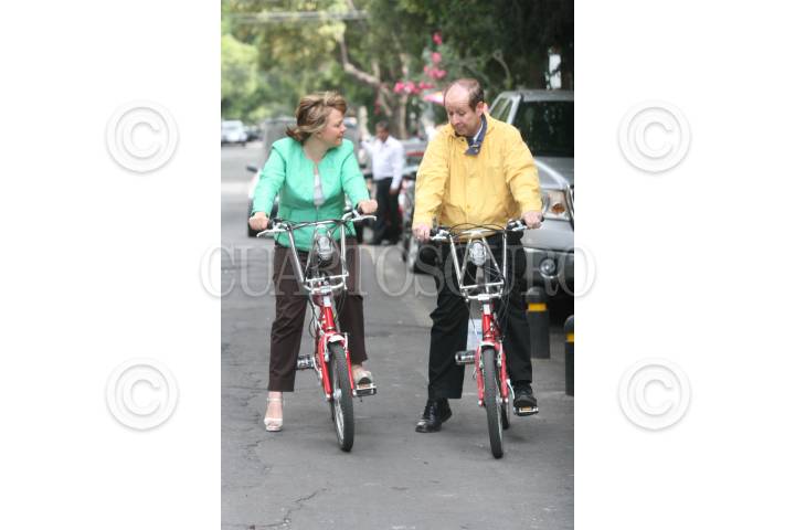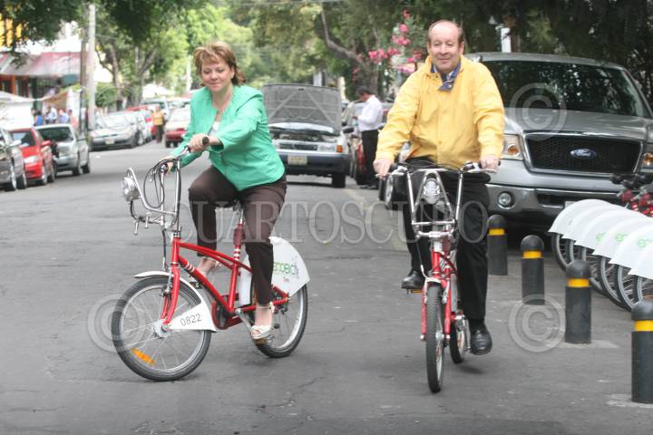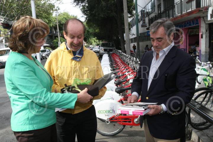 MÉXICO, D.F. 21MAYO2012.- Martha Delgado, secretaria de Medio Ambiente del D.F. entrego un reconocimiento al usuario Carlos Trujillo Zuñiga por haber realizado el viaje "4 millones" en el sistema Ecobici. Durante el acto se anunció la ampliación de este sistema a otras colonias como la Anáhuac, la Roma Sur, Polanco, entre otras. FOTO: JUAN PABLO ZAMORA /CUARTOSCURO.COM
