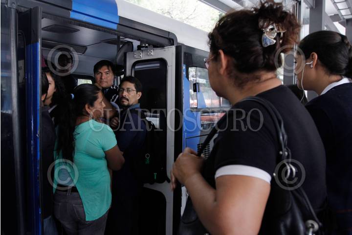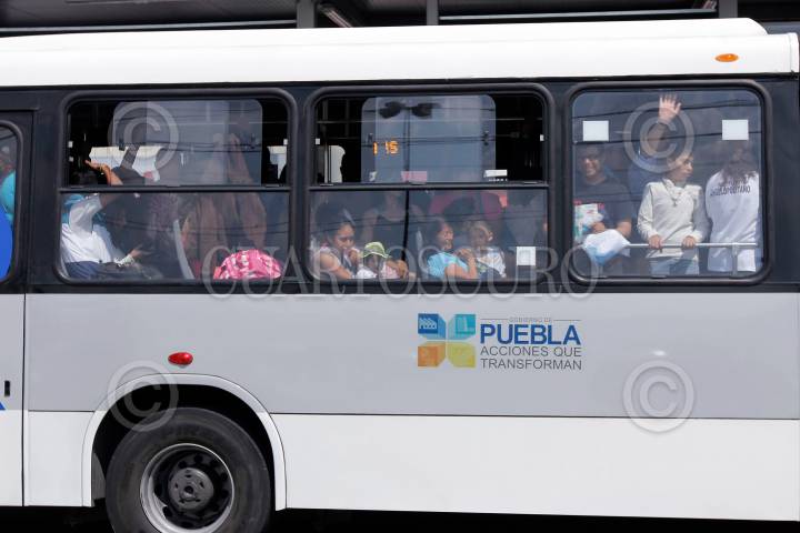 PUEBLA, PUEBLA, 17ABRIL2015.- Tras varios meses de retraso, hace unos días inició operaciones en Puebla la línea 2 de la Red Urbana de Transporte Articulado (RUTA). Con el arranque del Metrobús, que recorre la 11 Norte-Sur en la Capital poblana, fueron retiradas las otras rutas de ese corredor, por lo que la línea gubernamental es la única opción de transporte público, lo que ha causado inconformidad en la población, ya que la insuficiencia de unidades ha provocado abarrotamiento, descontrol y retraso en esta zona de la ciudad. FOTO: HILDA RÍOS /CUARTOSCURO.COM