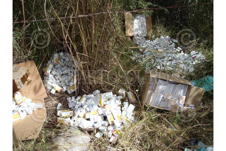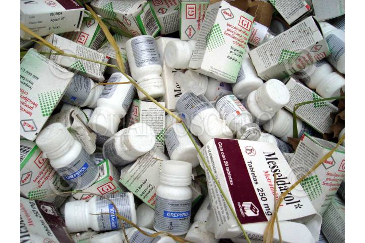 CHILPANCINGO, GUERRERO., 27NOVIEMBRE2007.- Aspecto de los medicamentos como bencilpenicilina, metronidazol, butilhiosina e ibuprofeno, utilizados en los centros de salud, los cuales ya caducados fueron tirados de manera inconsciente en un terreno baldio ubicado sobre la avenida Andres Figueroa la cual comunica a las colonias Guerrero 200 y 20 de Noviembre en la capital del estado. FOTO: OSCAR ALVARADO/CUARTOSCURO.COM