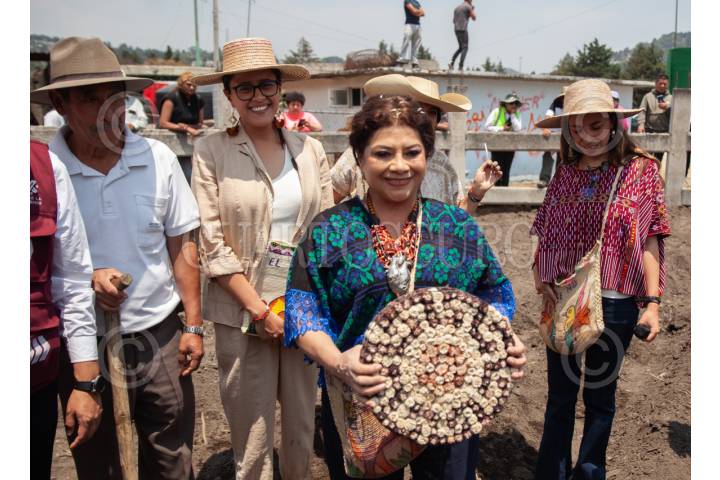 CIUDAD DE MÉXICO, 22ABRIL2025.- Clara Brugada, jefa de Gobierno de la Ciudad acompañada de Gabriela Osorio Hernández, Alcaldesa de Tlalpan encabezaron la presentación del proyecto Utopía de la Madre Tierra que se llegó a cabo en Topilejo. FOTO: ANDREA MURCIA /CUARTOSCURO.COM