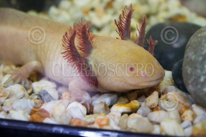 Un acuario con ajolotes en la Utopía Libertad de Iztapalapa.
