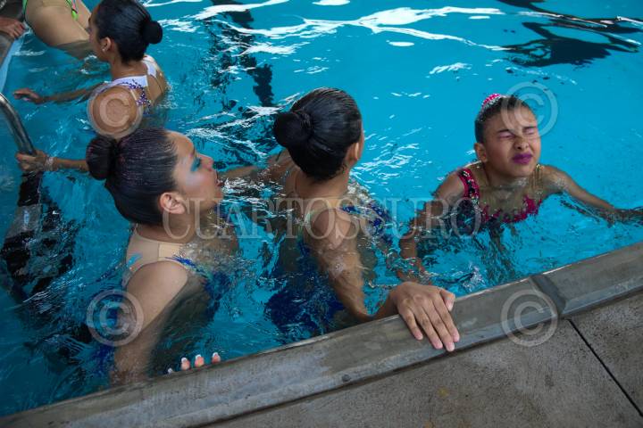 Nado sincronizado en la alberca de la Utopía Libertad, en Iztapalapa.