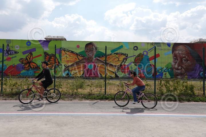 Jovenes rodan en bicicleta en la Utopía Libertad, en la alcaldía Iztapalapa