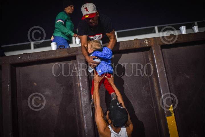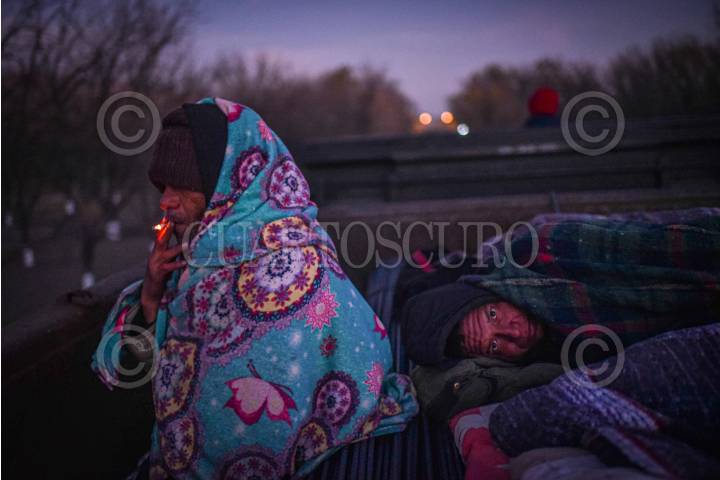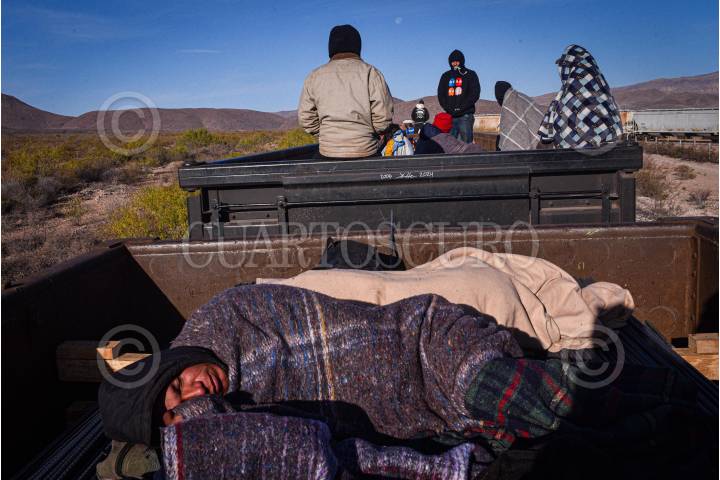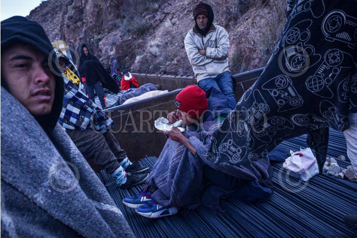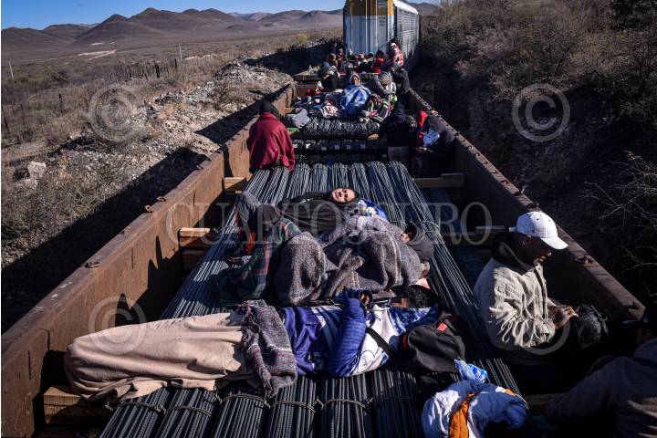 CAMARGO, CHIHUAHUA , 18DICIEMBRE2024.- Soportando temperaturas bajas y enfrentándose a todo tipo de adversidades en el camino, migrantes, en su mayoría provenientes de Venezuela, viajan a bordo de trenes con dirección al norte del continente. FOTO: PEDRO ANZA /CUARTOSCURO.COM