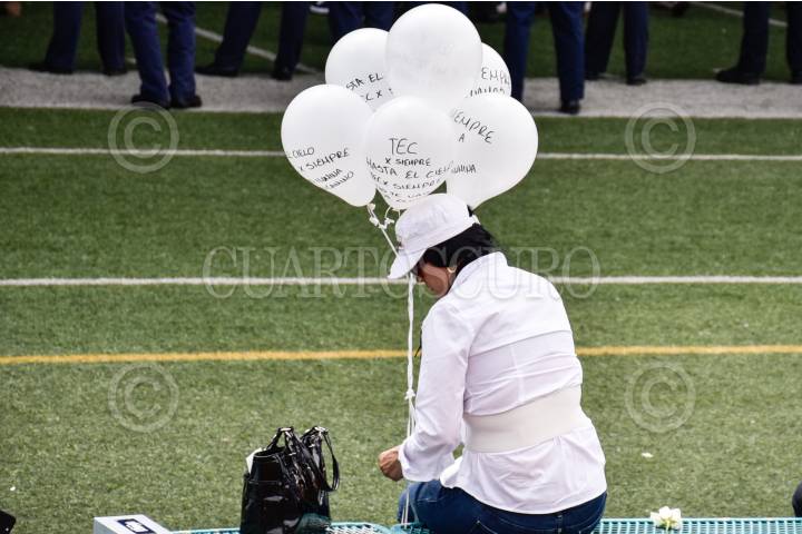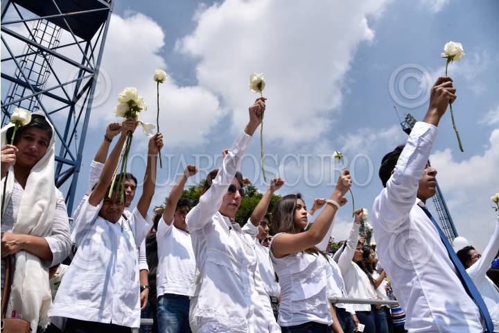 CIUDAD DE MÉXICO, 25SEPTIEMBRE2017.- La comunidad del Tec de Monterrey campus Ciudad de México llevaron a cabo el homenaje póstumo para honrar la memoria de Juan Carlos, Edgar Michel, Alejandro Rubén y Luis Manuel, víctimas del sismo del pasado 19 de septiembre. El homenaje fue realizado en el Centro Cultural y Deportivo de dicha univesidad, en donde acudieron más de 5 mil personas vestidas de blanco. FOTO: MARIO JASSO /CUARTOSCURO.COM