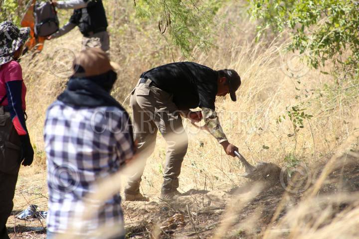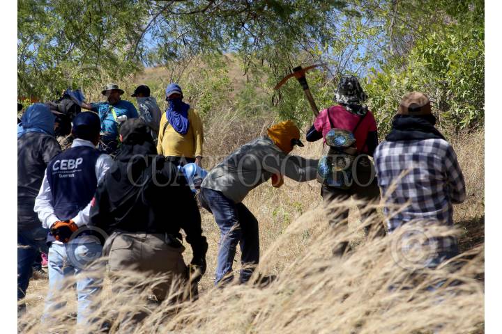 Integrantes y autoridades continúan los trabajos con palas, picos y perros rastreadores.
