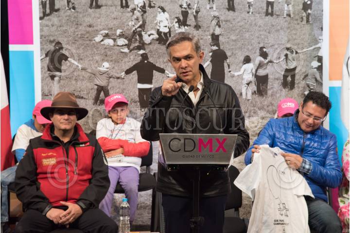 CIUDAD DE MÉXICO, 25MARZO2017.- Francisco Labiaga, Director General de grupo Ícaros, Miguel Ángel Mancera Espinosa, Jefe de Gobierno y Gustavo Gamaliel Martínez, Director General del DIF CDMX, encabezaron el Banderazo de salida a “Qué Padres Campamentos DIF CDMX 2017”. Fortalecimiento del vínculo familiar. FOTO: TERCERO DÍAZ /CUARTOSCURO.COM