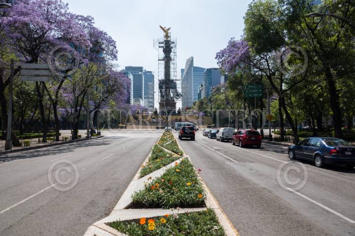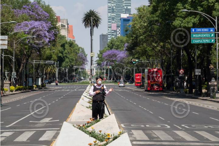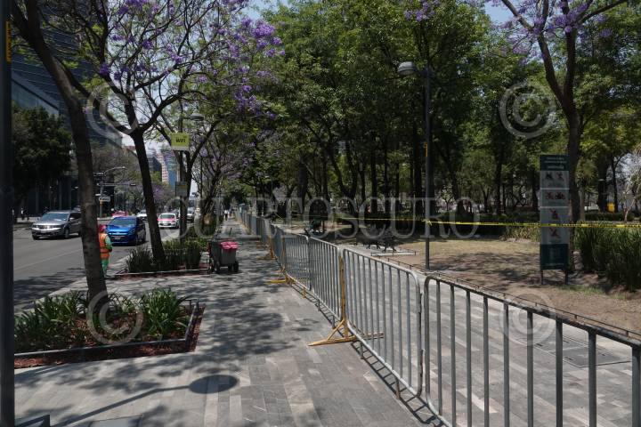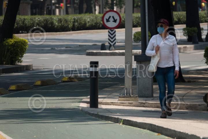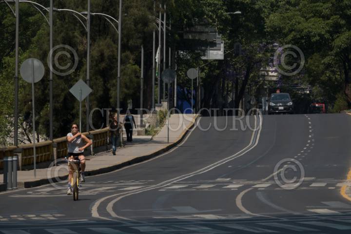 Avenida Reforma lució vacía esta tarde ante la suspensión del Paseo Ciclista de cada domingo por parte autoridades capitalinas como medida preventiva ante la propagación del Covid-19