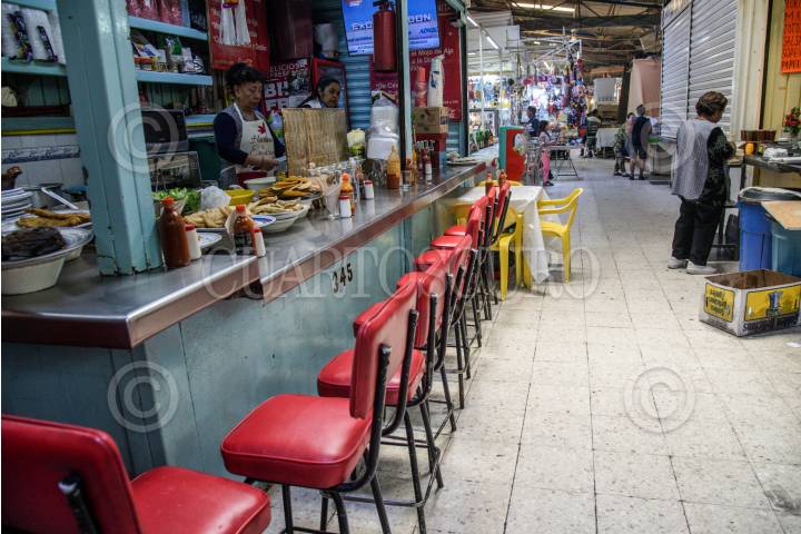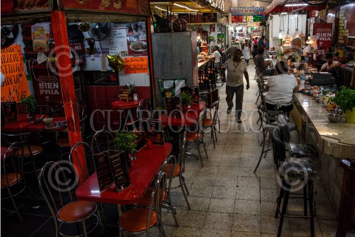 Puestos de comida de mercados de la capital lucen completamente solos y reportan pocos ingresos económicos debido a la fase 2 de la pandemia de coronavirus (covid-19) en el país.