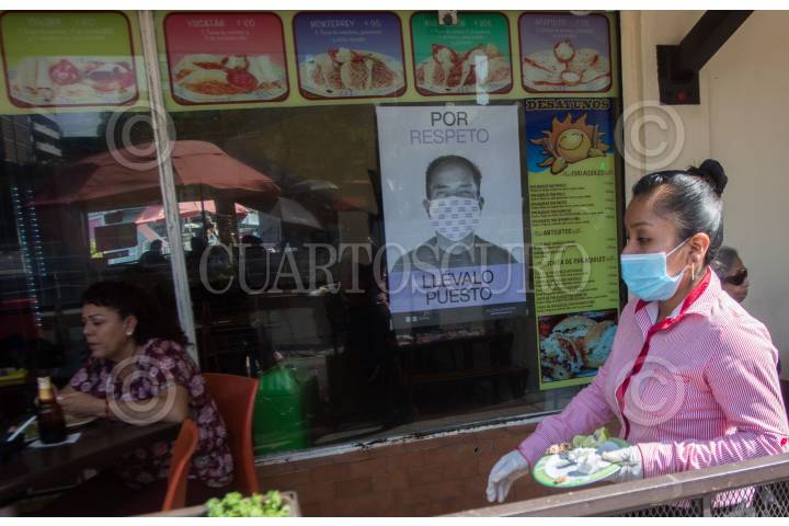 Restaurantes de la colonia Juárez de la alcaldía de Cuauhtémoc, cuenta con pocos comensales; debido a que muchas personas aún no regresan a trabajary gente que pide comida para llevar.