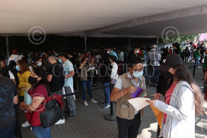 Miles de jóvenes realizaron fila para el inicio de vacunación contra COVID-19 de 15 a 17 años que se llevará a cabo en la Biblioteca Vasconcelos.