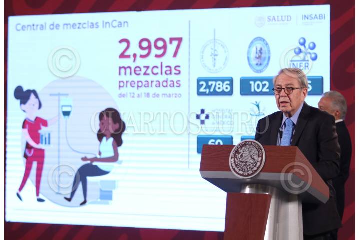 Jorge Alcocer Varela, secretario de Salud, durante la conferencia matutina dedicada al tema del Lago de Texcoco y Salud.