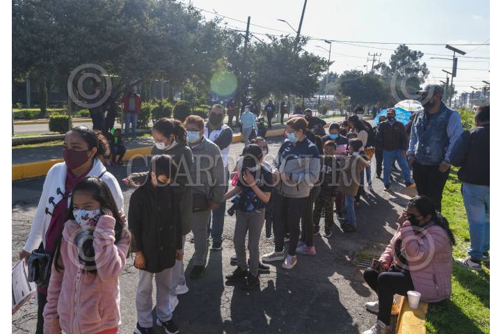 Gran afluencia de menores de edad durante el inicio de la vacunación contra COVID-19 a niños de 9 años de edad primera dosis en 102 municipios mexiquense.