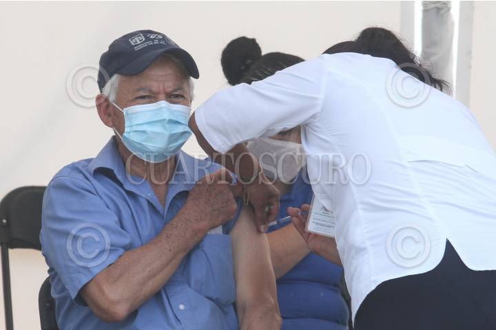 Adulto mayor momentos antes de recibir la vacuna contra COVID-19.