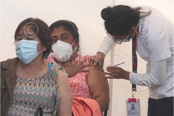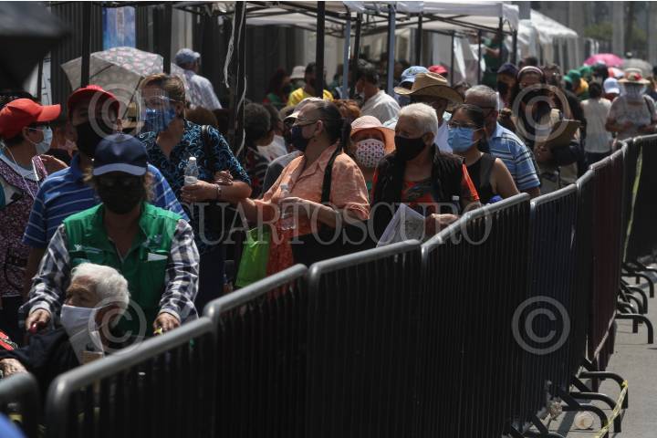 Vacunación en adultos mayores en el módulo de Bosque de Tláhuac.
