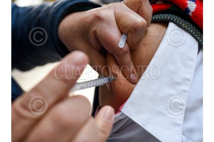 CIUDAD DE MÉXICO, 22OCTUBRE2024.- Una enfermera aplica una dosis de vacuna en el marco del arranque de la campaña de vacunación para la Temporada Invernal 2024-2025 en el Zócalo capitalino. Las vacunas que serán aplicadas son: refuerzo Covid-19, Influenza para grupos prioritarios, así como Neumococo. FOTO: GALO CAÑAS/CUARTOSCURO.COM