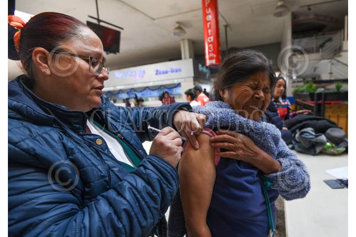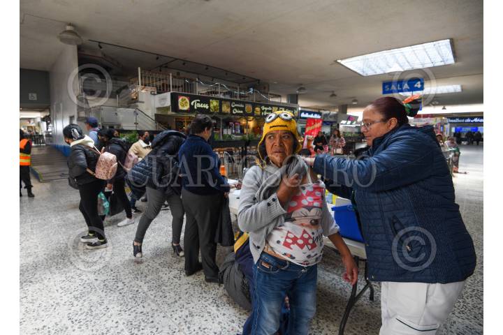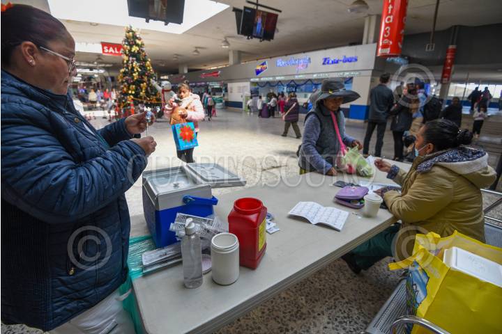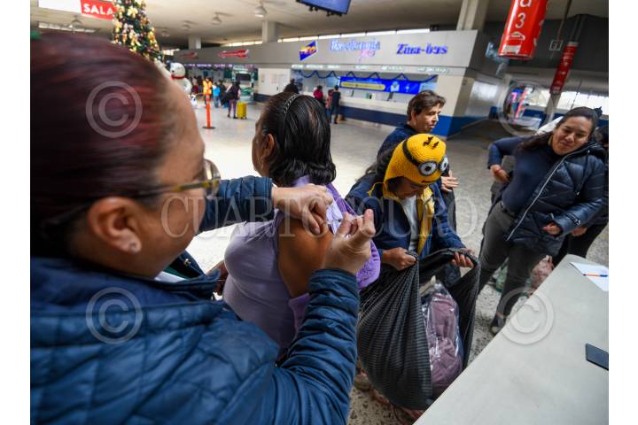 TOLUCA, ESTADO DE MÉXICO, 26DICIEMBRE2024.- En la Terminal de Autobuses de Toluca se aplicaron vacunas contra la Influenza por parte de personal del IMSS, varios de los usuarios aprovecharon para aplicarse su vacuna antes de irse a su destino. FOTO: CRISANTA ESPINOSA AGUILAR /CUARTOSCURO.COM
