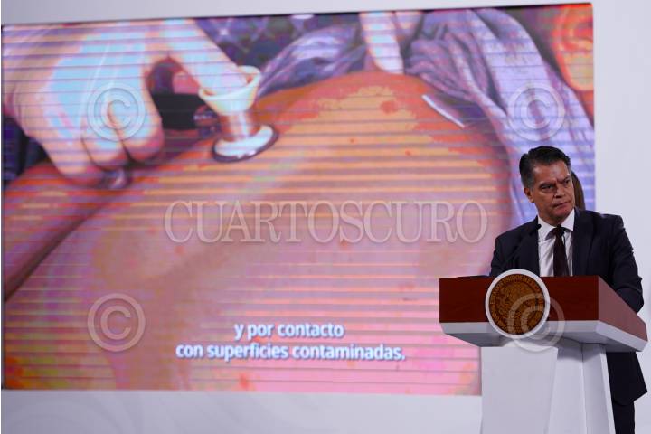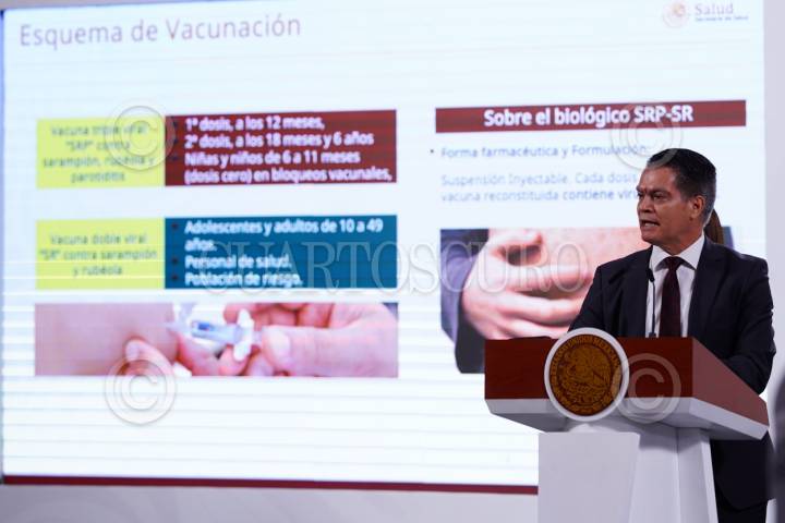 CIUDAD DE MÉXICO, 03JUNIO2025.- Ramiro López Elizalde, subsecretario de Prevención y Promoción a la Salud, habló sobre la prevención a través de la vacunación ante el creciente número de contagios de sarampión durante su participación en la conferencia de prensa “Mañanera del Pueblo” desde Palacio Nacional. FOTO: GALO CAÑAS/CUARTOSCURO.COM
