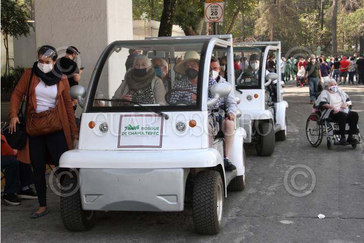 Carros eléctricos son implementados para traslado de adultos mayores, durante vacunación.