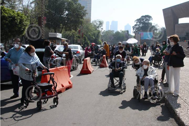 Llegada de adultos mayores al módulo de vacunación en Campo Marte.