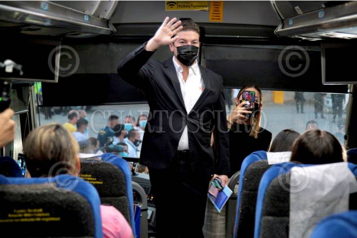 Una caravana de 18 autobuses con trabajadores de diferentes empresas partieron a la ciudad de Laredo, Texas para ser vacunados contra el Covid-19. Samuel García, gobernador electo de Nuevo León; encabezó la vacunación transfronteriza, la cuál estará destinada a miles de trabajadores neoloneses.