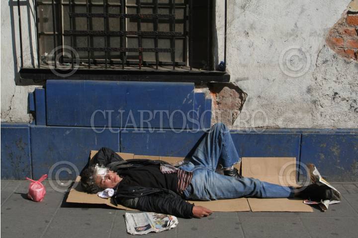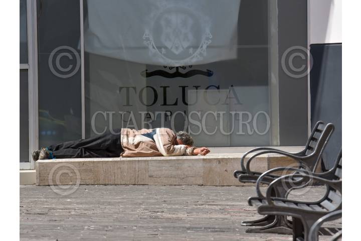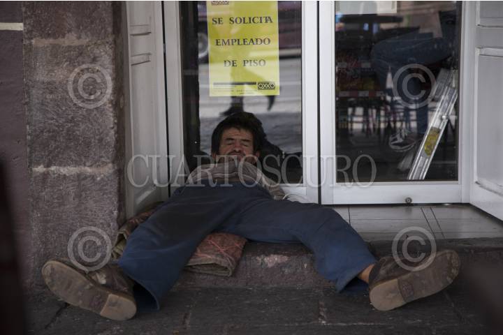 MORELIA, MICHOACÁN, 01JUNIO2016.- Un indigente toma un descanso a las afueras de una tienda de la cadena OXXO en el centro de la capital michoacana. FOTO: ALAN ORTEGA /CUARTOSCURO.COM