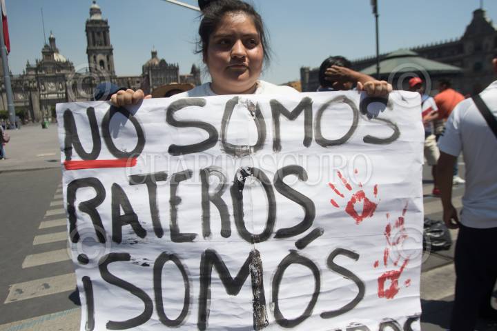 Comerciantes ambulantes "Vagoneros" protestan con un féretro