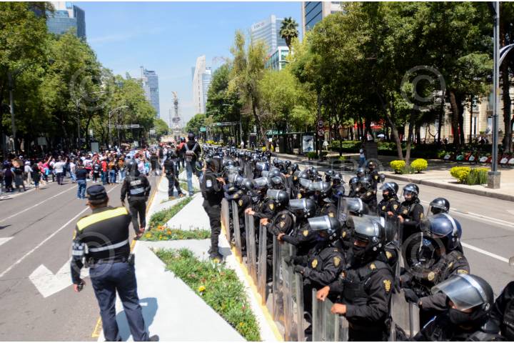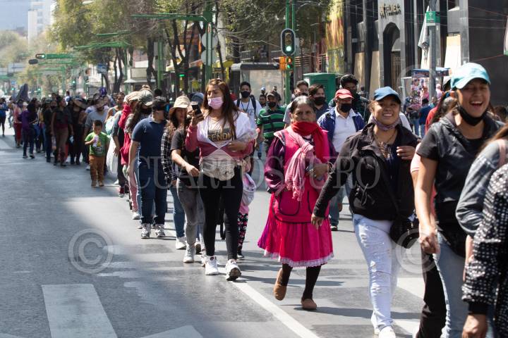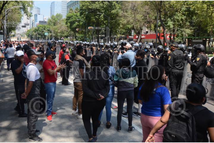 Vagoneros y ambulantes se manifestaron sobre Paseo de la Reforma en exigencia de mayore espacios para la venta de sus productos.