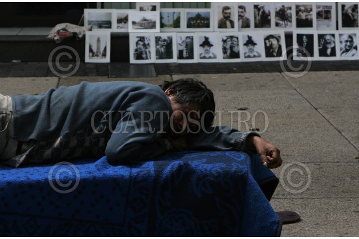 MEXICO, D.F.05SEPTIEMBRE2009.- Un indigente duerme sobre paseo de la Reforma. FOTO: IVAN STEPHENS/CUARTOSCURO.COM