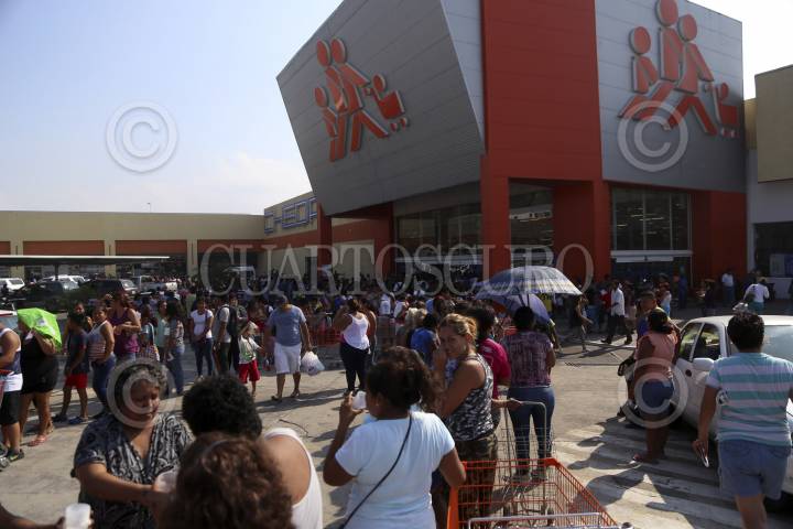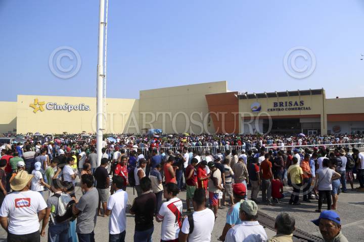 VERACRUZ, VERACRUZ, 07ENERO17.- La mañana de ayer y durante todo el día, miles de ciudadanos acudieron a la plaza comercial Brisas para recibir el vale de despensa por 500 pesos que el gobernador de Veracruz Miguel Ángel Yunes Linares prometió para que cesaran los saqueos, la numerosa fila alcanzaba estaba conformada por mujeres en su mayoría. FOTO: ILSE HUESCA /CUARTOSCURO.COM
