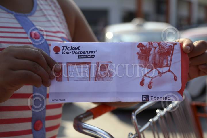 Integrantes de la alcaldía Iztapalapa entregaron vales del programa "Mercomuna", los cuales equivalen 300 pesos en Canasta Verde con frutas, verduras y granos
