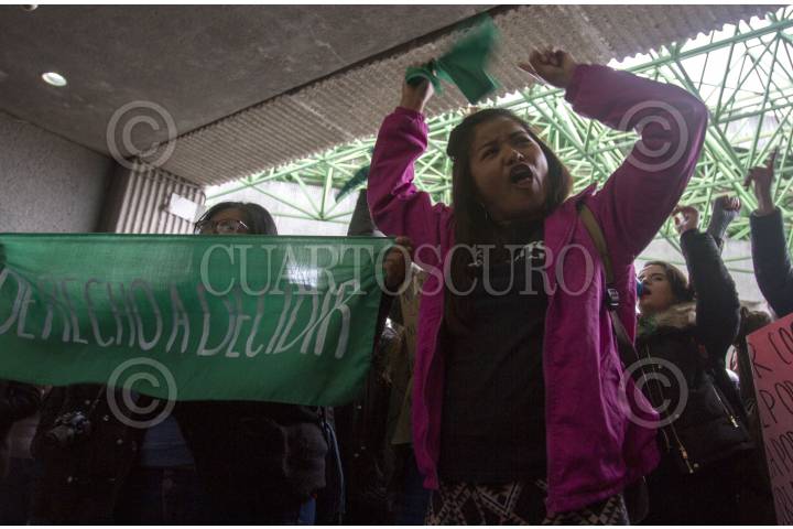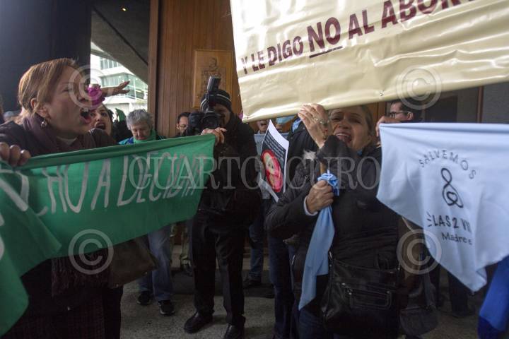 MONTERREY, NUEVO LEÓN, 06MARZO2019.- Mujeres de diferentes organizaciones feministas se encararon con grupos religiosos en las afueras del Congreso Local, ante una posible validación de reformar el artículo 1 de la Constitución del estado de Nuevo León, el cual garantiza el derecho a la vida dese la concepción hasta la muerte natural. Ambos grupos protestan; feministas en contra, religiosos a favor que se cumpla la ley antiaborto en el estado. Legisladores acordaron discutir el tema y votar a favor o en contra, en el transcurso del día 6 de marzo. FOTO: GABRIELA PÉREZ MONTIEL /CUARTOSCURO.COM