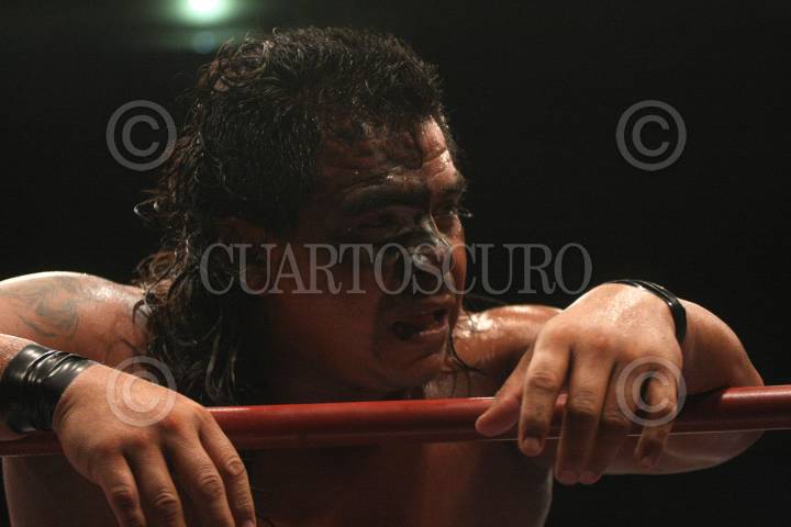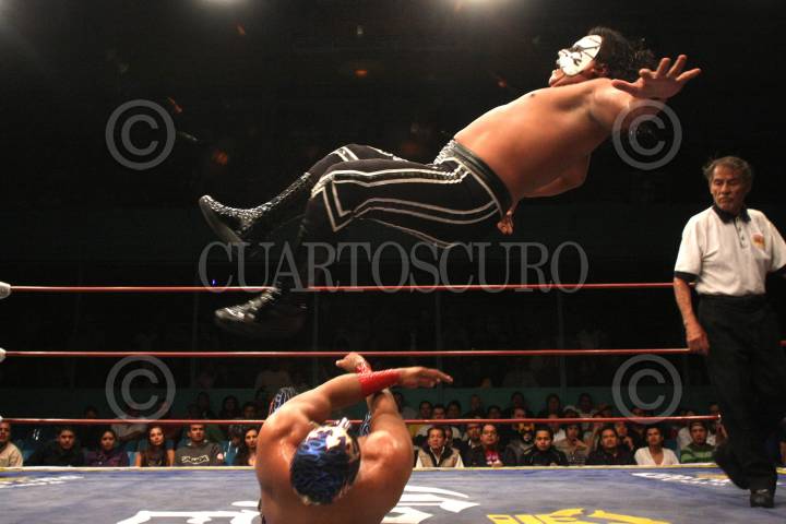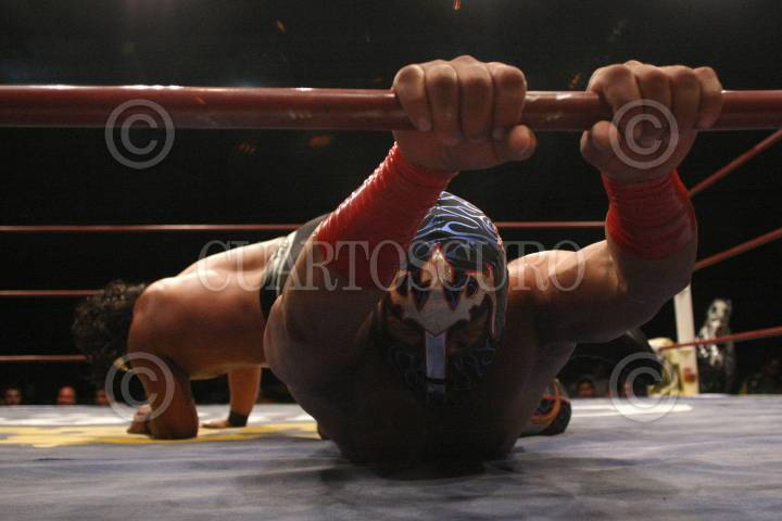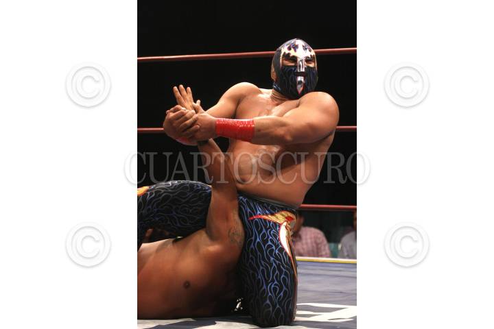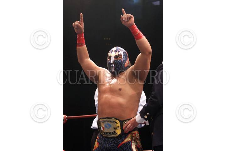 PUEBLA, PUEBLA, 03MAYO2011.- El luchador técnico Valiente se coronó como campeón nacional Welter del CMLL tras vencer a su rival Virus, en una pelea disputada en la Arena Puebla. FOTO: FRANCISCO GUASCO/CUARTOSCURO.COM