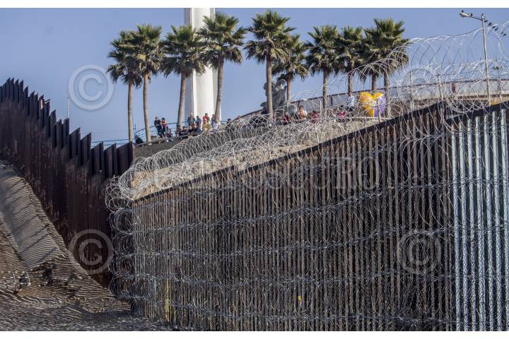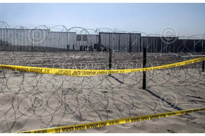 TIJUANA, BAJA CALIFORNIA, 20NOVIEMBRE2018.- Autoridades norteamericanas reforzaron la seguridad de la frontera colocando alambres púas sobre el muro fronterizo en la zona del parque Estatal de Imperial Beach, el cual colinda con Playas de Tijuana. Esto como respuesta tras la llegada de miles de migrantes que han recorrido miles de kilómetros desde Centroamérica hasta la frontera norte de México en busca de asilo humanitario en Estados Unidos. FOTO: OMAR MARTÍNEZ /CUARTOSCURO.COM