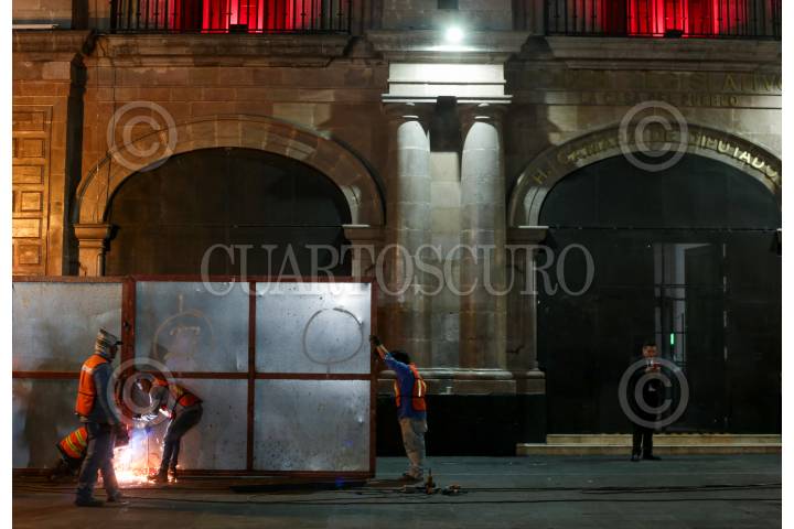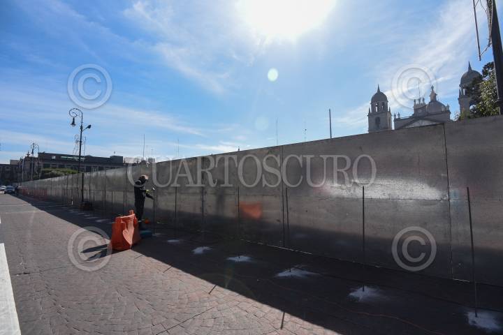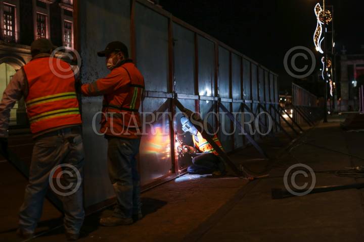 Con vallas metálicas comenzó el resguardo de Palacio Nacional previo a la marcha del "8M" que se realiza en el marco del día internacional de la mujer.