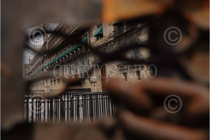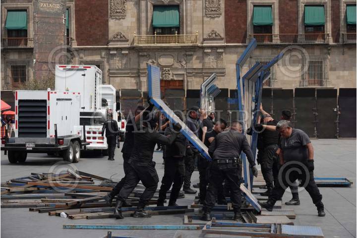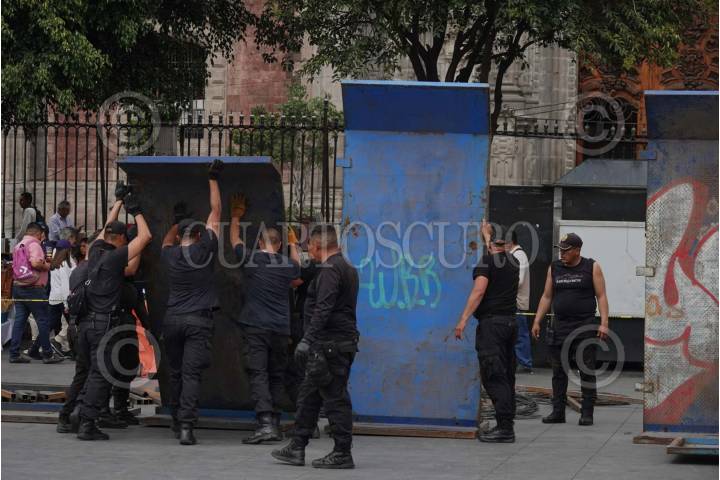 CIUDAD DE MÉXICO, 06MARZO2025.- Elementos de la Secretaria de Seguridad Ciudadana continúan blindado las inmediaciones afuera de la Catedral en el Zócalo capitalino debido a la marcha del próximo sábado en conmemoración del Día Internacional de la Mujer. FOTO: GRACIELA LÓPEZ/CUARTOSCURO.COM