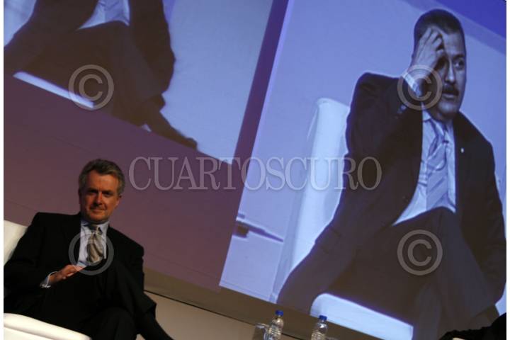 MÉXICO, D.F., 29OCTUBRE2007.- Los coordinadores parlamentarios, Santiago Creel Miranda y Manlio Fabio Beltrones Ribera, durante la quinta sesión de la XVlll convención del mercado de valores. FOTO: URIEL ROLDAN AGUILAR/CUARTOSCURO.COM