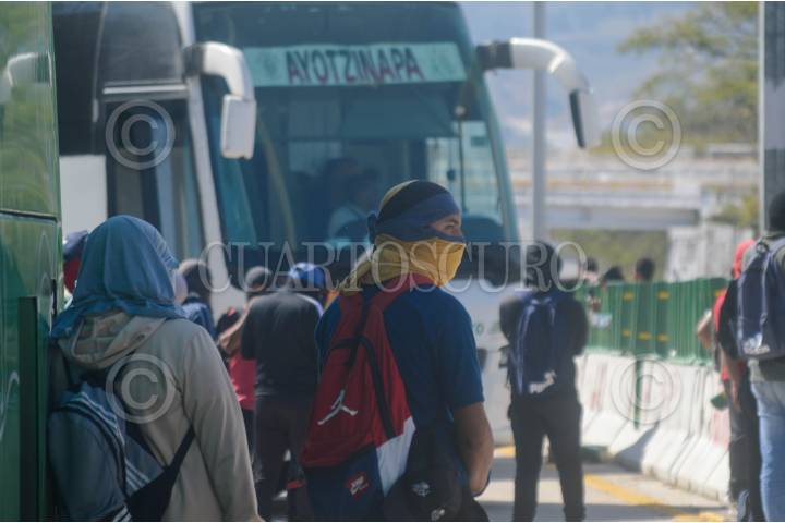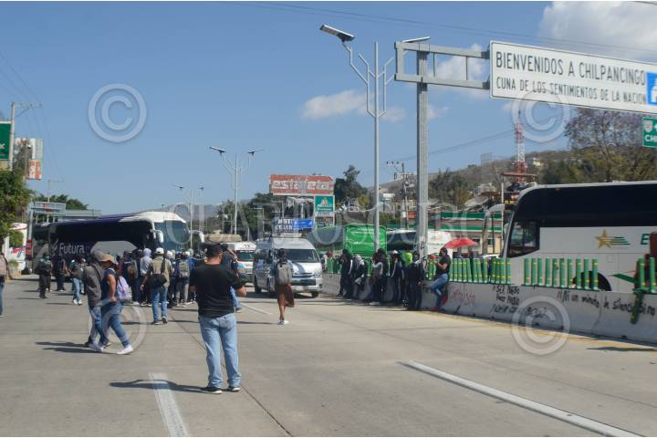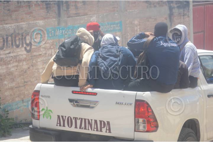 CHILPANCINGO, GUERRERO, 11MARZO2025.- Estudiantes de la Escuela Normal Rural de Ayotzinapa bloquean y retienen 8 unidades de la Autopista del Sol, a la altura del Parador del Marqués. Al paso de una hora de bloqueo, el secretario de Educación en Guerrero, Ricardo Castillo Peña llegó al bloqueo para dialogar con los normalistas, con quiénes acordaron trasladar la negociación a las oficinas alternas de la dependencia, donde se establecería una mesa de trabajo para atender sus exigencias. Minutos después de la una de la tarde, Estudiantes de Ayotzinapa rompieron el diálogo en la mesa de negociación que mantenían con el secretario de Educación en Guerrero, Ricardo Castillo y Peña, por lo que a bordo de 7 camionetas arribaron a las oficinas alternas de la SEG y las vandalizaron. En el interior de las oficinas, rompieron cristales y destruyeron el material de oficina. Asimismo, lanzaron petardos al interior del inmueble y en la camioneta, con intención de incendiar, pero está no prendió. FOTO: DASSAEV TÉLLEZ ADAME/CUARTOSCURO.COM